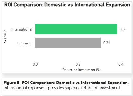 The comparison of domestic and international expansion in the Excel justifies international expansion. The domestic expansion is projected to require 1.8 billion in investment, a 6.5 billion projected revenue boost, an 8.5 percent projected operating margin, a projected operating profit of 0.553 billion, and an ROI of 30.7 percent. The international expansion is designed to have a capital investment of 2.8 billion, an anticipated revenue increase of 114 billion, a 9.4 percent operating margin, a projected operating profit of 1.072 billion, and an ROI of 38.3 percent. In this recommendation, the performance of Amazon segment and operating scale as reported is used as the baseline to model comparative scenarios (Amazon.com, Inc., 2025).